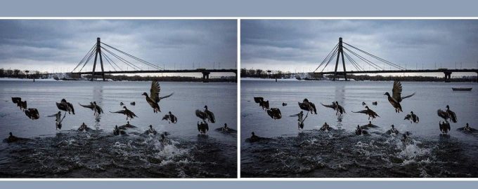 Na první pohled se zdá, že dva obrázky s kachnami jsou stejné. Je na nich Severní most v Kyjevě a kachny v jeho blízkosti. Mezi snímky je však několik drobných, ale důležitých rozdílů. Jejich hledáním si vyzkoušíte, jak ostrý máte zrak a schopnost všímat si detailů.