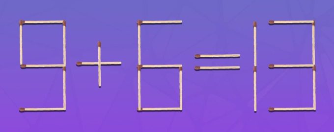 Níže uvedená hádanka je určena pro lidi s výjimečnými schopnostmi soustředění. Na obrázku uvidíte rovnost „9+6=13“, která je z matematického hlediska chybná. Musíte ji opravit.