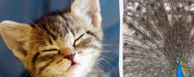 Kotě bylo za pavím ocasem / koláž z fotografie Mojeu