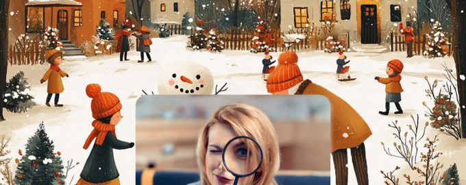 Níže uvidíte obrázek zasněženého náměstí, po kterém se procházejí lidé. Někdo si hraje se sněhovými koulemi, někdo staví sněhuláka nebo prostě jen obdivuje zimní krajinu.