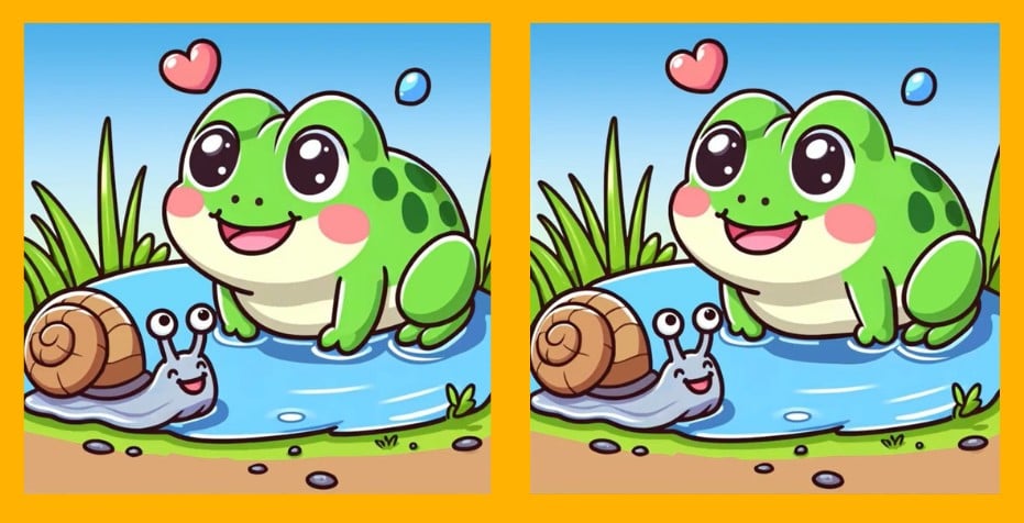 Tak co, jste připraveni na další výzvu? Podívejte se pozorně na dva obrázky žáby a šneka. Na první pohled vypadají stejně, ale jsou mezi nimi tři malé rozdíly. Myslíte si, že je všechny najdete za 17 sekund? Zkuste to a otestujte svou ostrost zraku!